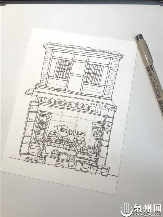 位于金鱼巷22-4号“鲤·游”创客空间的施可欣,是一名在校大学生,泉州人,目前就读于澳大利亚墨尔本皇家理工大学艺术陶瓷专业。她创作的西街老铺系列,不仅通过绘画的方式记录下店铺本身的模样,更希望唤起大家对泉州丰厚历史积淀的认识。本次展览,她的作品是主要以水彩手绘的方式描绘的西街最具特色的11栋老铺,以金鱼巷为起点,通过绘画带你游鲤城,一同了解泉州古城丰厚的历史文化积淀。