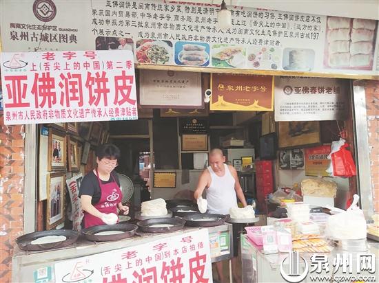 在西街,陪伴了泉州人整整一个世纪的亚佛润饼店里,老板的女儿、戴着眼镜做润饼皮的傅锦娜已成为老铺的一道风景,老板傅国忠也受邀给更多的孩子们讲授润饼皮的故事和技艺。“我和父亲将携手将传统文化传播给新一代的年轻人,让他们体会到传统文化的重要性。”作为“第四代传人”,傅锦娜接棒了家传手艺的同时,也在脑海中规划着未来:“没有最好,只有更好,技术还可以再提高。接下来,我考虑重装店面,还要开通外卖,那才跟得上时代的潮流。”