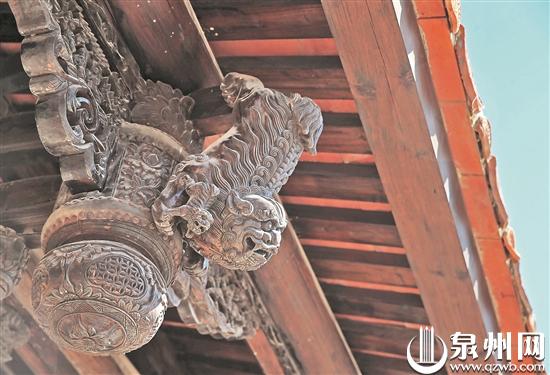 闽南传统建筑通常采用木质结构,木构造上多为穿斗式,也有和抬梁式混合运用,所不同的是独具地域特色的“穿斗网状式结构”,形态美观,受力分布均衡,具有“墙倒屋不倒”的效果。网状穿斗结构和精妙的“蜘蛛结网”藻井、“飞天斗拱”等构造特点,包含着独到的营造技艺。“无木不雕,无石不刻”是典型闽南传统建筑的真实写照。石木雕刻已不再是一般的装饰,而是与红砖建筑的造型结构、建筑文化、艺文表现密切相关。