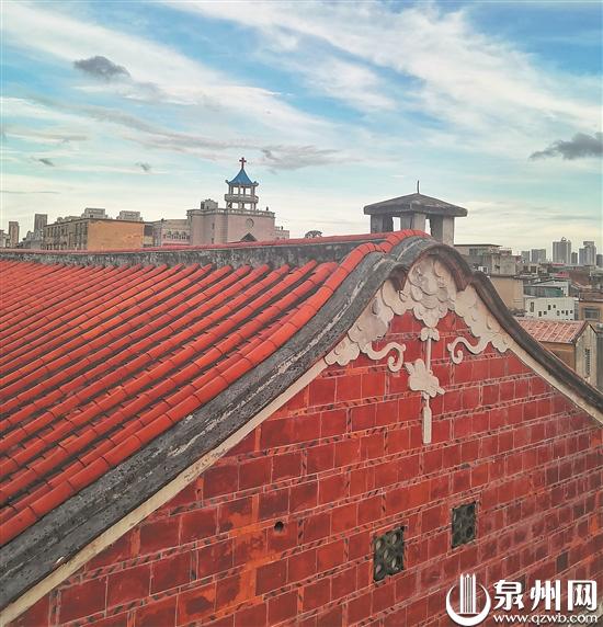 弯曲的屋顶、高翘的燕尾脊、色彩斑斓的红砖白墙,张扬着闽南建筑的特有风格。(陈起拓 摄)
