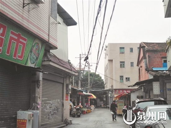 前天,记者来到鲤城区江南街道后头街,看到了冯女士反映的这段垂下来的线缆。记者注意到,垂下来的线缆并非一根,而是多根线缆相互缠绕。这段垂了下来的线缆长达近5米,最低处到成人腰部,其中一根已经完全脱落,掉到了地上。