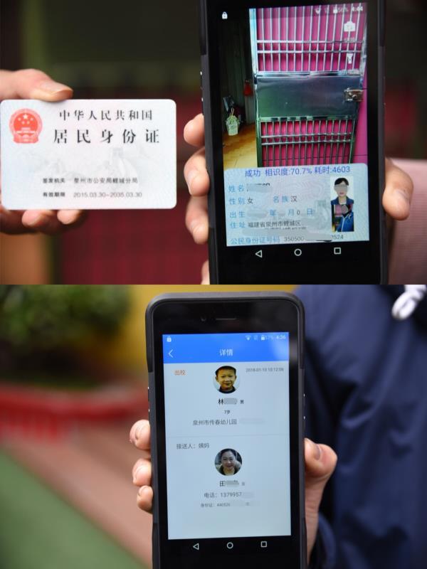 传春幼儿园相关负责人介绍,目前幼儿园有400多名孩子,此前家长是用电子卡来接送孩子,但卡片证明容易丢失,况且一旦家长换人接送孩子,园方难以确认。鲤城公安分局推广的“人脸智能安全接送系统”,实际操作只需一台手机大小的人脸识别机,前期幼儿园已经将家长们的个人信息录入到人脸识别机中,现在家长来接送孩子时,只需用人脸识别机一扫,家长及关联孩子的照片和基本信息就会自动跳出。更方便的是,识别机可以录入与孩子关联的多名家长信息,当家长临时有事换人接孩子,园方也可以轻松确认。