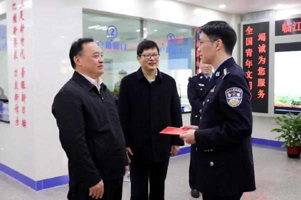 市委常委、市纪委书记、市监察委主任温惠榕,副市长、公安局长卢炳椿看望慰问临近春节坚守一线的临江派出所民警,感谢他们为确保人民群众过一个安定祥和的春节所作出的努力和付出,希望全体民警再接再厉,努力为平安泉州建设作出新贡献。