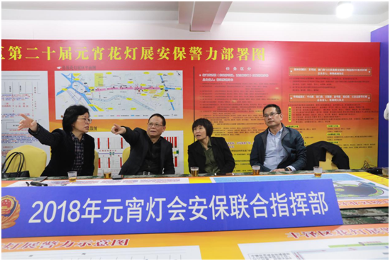 陈铁晗部长、林锦明书记一行通过指挥部视频监控实地查看了灯会展区人流管控及各出入口安防设施落实情况,听取陈爱民局长关于现场警力部署、观众疏导、交通管制、通信保障等各项安保工作的情况汇报,并对元宵安保工作提出要求:一是要严格安保措施。本着“细之又细、实之又实、严之又严”的工作要求,精心组织,周密部署,狠抓措施落实到位,并充分评估可能出现的各种突发情况,未雨绸缪,超前做好应急处突准备,确保能及时高效地处置各类突发事件。二是要做好宣传引导。充分利用各类媒体,宣传灯会现场安全管控措施,引导观众自觉服从管理、维护现场秩序。三是要严格执勤纪律。严格落实现场执勤纪律,严格、公正、文明、理性执法,争取群众的理解和支持,树立人民警察的良好形象。