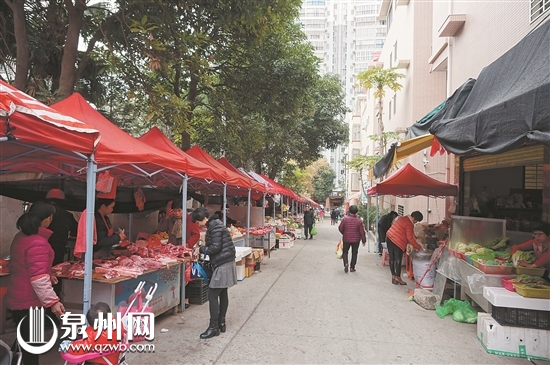 昨日上午,在西园街道王厝社区菜市场,道路两侧搭有规格统一的帐篷,摊贩们有序经营。据陈女士介绍,之前摊贩们直接将摊位摆在马路上,“市场”很是脏乱。据了解,原本王厝菜市场拆掉之后,摊贩们就在环湖路上扎堆占道经营,导致附近居民出行不便。从去年5月,王厝社区联合晋江市行政执法局,对社区占道经营、流动摊贩的问题开展专项整治。不过,要堵也要疏,王厝社区协调开发商,在相关部门的帮助下,改造了一个垃圾场,重新铺了条路。这样一来,一个临时菜市场就建成了。很快,原本乱糟糟的“马路市场”变为便民服务点。