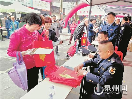 泉州网3月16日讯 (记者李心雨 通讯员 吴端海 文/图)为了更好地理解和把握《福建省违法建设处置若干规定》,切实增强社会公众依法建设、依法用地意识,推进“两违”综合治理进入法治化轨道,3月15日上午,开发区管委会组织区科经局、社会事业局、工商局、执法分局、食药监分局等部门在崇仁街宣传服务点开展大型法律法规宣传活动。