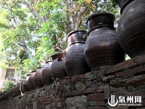 相比现代的碎玻璃、尖金属的防盗方式,这里用瓦罐防盗,透着传统文化的儒雅