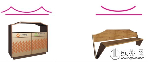 提取闽南建筑的檐角、屋脊中的视觉形象,用于城市家具,可谓匠心独运