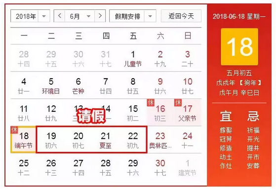 只要胆子大,19日-22日请假四天,端午三天小长假瞬间变成九天假期!