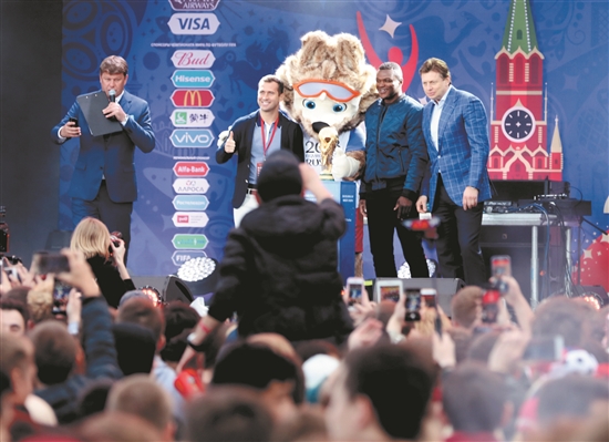 当地时间6月10日,2018世界杯球迷节在莫斯科麻雀山开幕,大批明星到场祝贺。(中新)