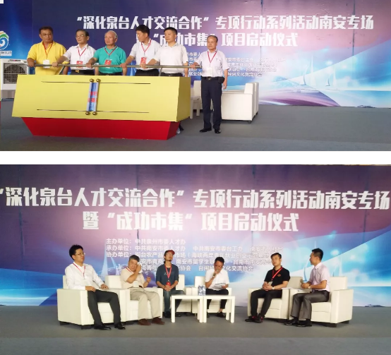 为深入推进人才"港湾计划",深化泉台人才交流,6月21日下午,由泉州市委人才办主办,南安市委人才办、南安市委台工办和南安市人社局承办,闽台农产品交易市场(海峡两岸青年就业创业示范基地)、南安市青商会、南安市留学生联谊会、台南市南安商会、台湾青年就业创业协会、台闽经贸文化交流协会共同协办的"深化泉台人才交流合作"专项行动系列活动暨"成功市集"项目启动仪式在南安市石井镇闽台农产品市场举行。