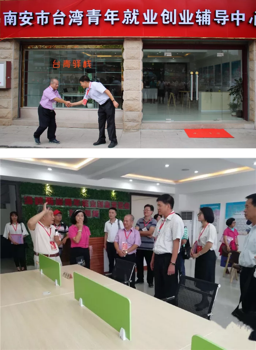 随后,举行了南安市台湾青年就业创业辅导中心、"台青驿栈"揭牌仪式。与会嘉宾还参观了"成功市集"。"成功市集"位于闽台农产品市场,展示了台湾20多家参展商的特色产品。参观结束后,泉州"芯谷"南安园区办、海丝泛家居项目办、南安市青商会、南安市留联、台湾青年就业创业协会、1111人力资源银行、台湾国信企业管理顾问有限公司等机构代表就"深化南台人才交流"等主题展开座谈会。