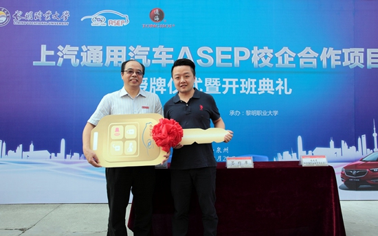 9月21日上午,上汽通用汽车ASEP校企合作项目授牌仪式暨开班典礼在黎明职业大学实训大楼一楼隆重举行。莅临授牌仪式暨开班典礼的领导和嘉宾有福建省政协港澳台侨和外事委员会副主任卢德昌,福建省教育厅职成处处长张文东,福建中华职教社副主任、福建通海集团董事长王清海,泉州市委统战部副部长、泉州市工商联党组书记陈晖,泉州市教育局副局长李树和,泉州市委统战部副调研员、泉州市中华职教社副主任卓晨雷,上汽通用汽车ASEP校企合作项目经理王立刚、上汽通用汽车ASEP校企合作项目主管殷雪飞、上汽通用汽车售后服务事业部现场技术经理陈曦,福建通海集团副董事长张珉豪、福建省王清海职业教育基金会副理事长谢金生、福建通海集团人力资源部经理林白棠等。校党委书记王松柏、校长黄世清、学校中层正职干部(含主持)、信电学院全体教师、黎明职业大学上汽通用汽车部分学生代表出席典礼。典礼由副校长余大杭主持。
