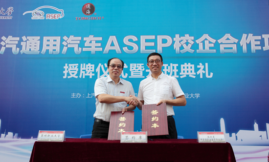 王松柏、王立刚分别代表黎明职业大学、上汽通用汽车为ASEP校企合作项目实训中心揭牌。会上还进行了签约和捐赠仪式。上汽通用汽车为学校提供教学用车、发动机、变速箱、教学资源等价值300多万的教学设备和培训。福建省王清海职业教育基金会在黎明职业大学设立“通海奖学金”,首期金额50万元人民币,用于奖励ASEP班学生。同时,学校还聘请王清海、张珉豪为客座教授,王松柏书记为他们颁发聘书。