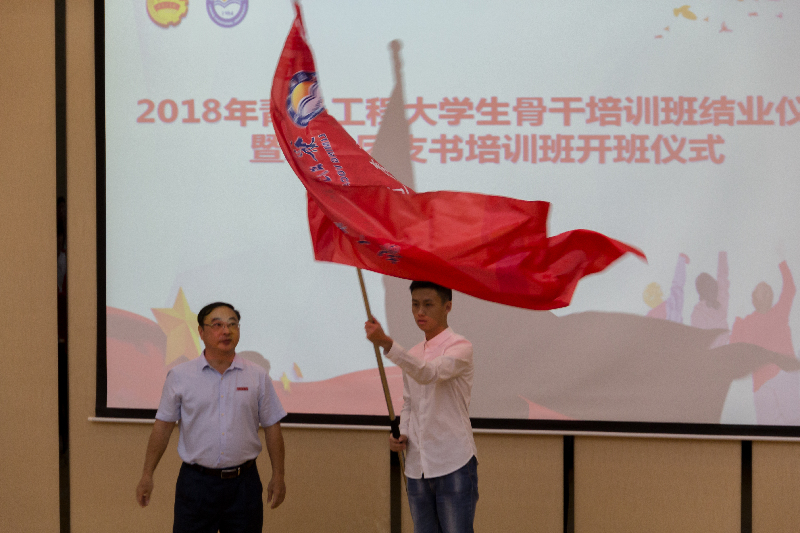 庄一民为新生团支书培训班授旗。他指出培养教育好团员青年一代是党赋予高校共青团最重要、最基本和首要的任务,他希望骨干班的学员们要继续坚持学习、乐于创新、勇于实践,以青年马克思主义者的标准要求自己,并将青马思想碰撞的火花、汇聚的力量带给身边的同学。对于即将开班的团支书培训班学员,他要求一要坚定理想信念,做马克思主义思想和中国特色社会主义道路的青年实践者;二要珍惜时间,平衡好学习与工作的关系,做全面成长的领跑者;三要明确自身定位,做服务同学的践行者;四要秉承“正直、勤朴、善学、强技”的校训和“爱国、求真、自强、笃行、奉献”的黎明精神,争做学生的表率。