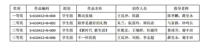 获奖信息此次大赛,共有参赛院校577所,共征集作品15837件,黎明职业大学参赛作品在比赛中脱颖而出,成绩优异,共斩获四项大奖,2017级影视多媒体技术专业学生王艮冲等创作的作品《舞动泉城》斩获头筹,另外三部分别获二等奖(1个)和三等奖(2个)。其中,马家群、蔡靖芳、陈李鹏、薛呈永、谢丰田荣获优秀指导老师。