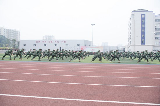 随着江新兴一声令下,3200多名新生组成的17个方队进行会操表演。各连队参加会操表演的学生方队英姿飒爽,整齐划一,展示当代大学生良好的精神风貌。随后全体参训学生按流程安排,进行威风锣鼓、匍匐拳、战地救护、匕首操、警棍表演、擒敌拳、刺杀操和手语操等汇报表演。在军训教官指挥下,各方队动作整齐划一,口号声清脆洪亮,赢得了全场阵阵掌声。