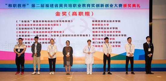 10月29日上午,“和职教杯”第二届福建省黄炎培职业教育奖创新创业大赛在黎明职业大学举行颁奖典礼暨闭幕式,全省130所院校选拔推荐的584个省级复赛项目,经过网络评选和总决赛的激烈角逐,脱颖而出的120个优秀项目团队代表最终站上了领奖台。