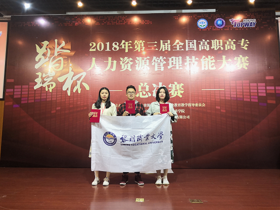 本赛项由人力资源管理方案设计和竞争对抗两部分组成,涉及到人力资源管理六大模块的知识与技能应用。由2016企管1班郑伊静、江枫烽、林嘉鹏三名同学组成的代表队,在李桂英和戴雪文两位老师的精心指导下,实现在该项赛事中的新突破。
