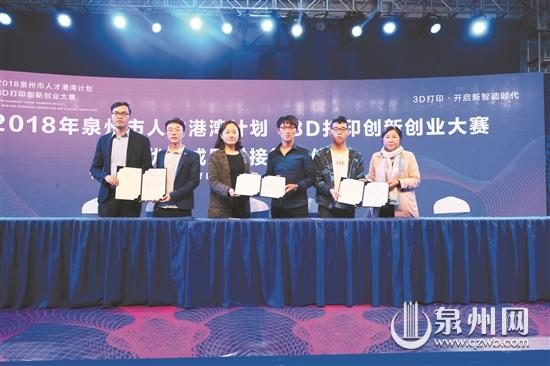 科技创新的关键环节之一就是成果转化。在刚刚落下帷幕的2018年泉州市人才港湾计划·3D打印创新创业大赛上,各项优秀成果的积极转化效应令人印象深刻。在大赛组委会的牵线搭桥下,已有3项优秀成果和4位人才与泉州企业完成对接、签约。