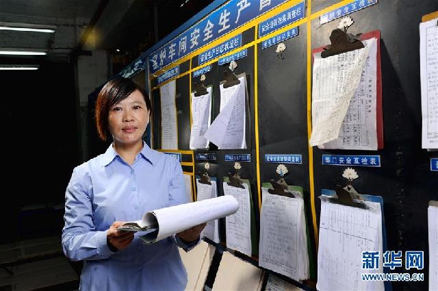 胡小燕在曾经工作过的陶瓷厂检查职工权益保护工作(2013年11月5日摄)。新华社记者刘大伟摄