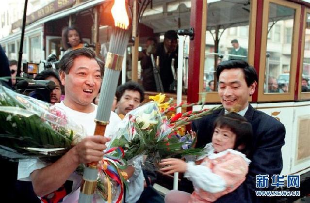 1996年5月3日,许海峰在旧金山参加奥运火炬传递。新华社记者宋晓刚 摄