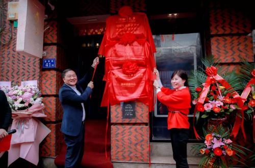 △鲤城区委常委、宣传部长、市古城办常务副主任黄天凯先生,金鱼巷41号咖啡空间主理人齐小兰女士共同为“德兰·书咖啡文化学院”揭牌。