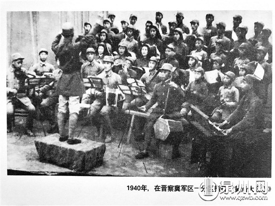 1940年,罗浪在晋察冀军区一分区指挥《黄河大合唱》。