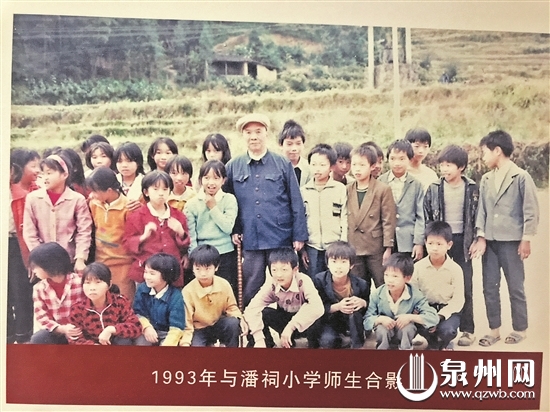 1993年,罗浪回到家乡德化潘祠村与潘祠小学师生合影。这是他最后一次返乡。