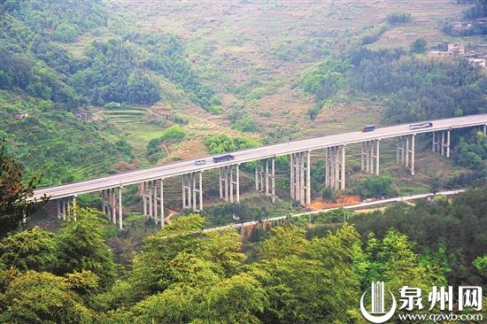 高速路网加快了山城巨变,图为泉三高速永春段。(潘登 摄)