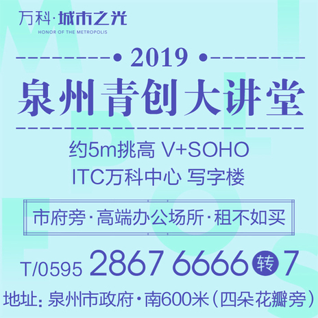 泉州网6月21日讯(记者洪荣堆)本周日(6月23日)下午,万科城市之光•2019泉州青创大讲堂将举办第二期活动,推进创新项目分享、创新产品展示等交流互动,欢迎有梦想、有激情的创业青年和崇尚创新创意生活的市民拨打报名热线:0595-22500098(上班时间)。