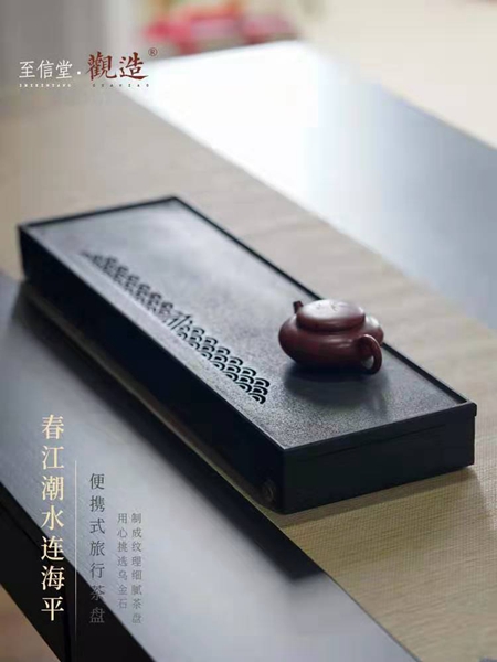 这款茶台应用复式结构,采用精湛手工镂空式设计,浪花圆纹排水孔,干湿两用,可蓄水可排水,将现代审美与传统文化底蕴相结合,一器多用,当茶水洒落盘面,犹如行云流水般巧妙排到底下储水层。底部托盘映衬的微微茶韵,将人带入一种微微的冥想,感受茶道融于自然且浑然天成的自在。此款茶器适合置于客厅、茶室等场景,亦可搁置室外,格物悦己。