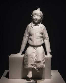 作品塑造以小惠女和鱼儿嬉戏的场景,表现惠女热爱生活、与自然和谐相处的主题。