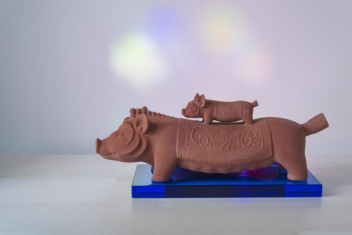 说明:作品以大、小萌猪相互嬉戏,共处温馨美好的时光,寓示亥年和谐美好、快乐成长。
