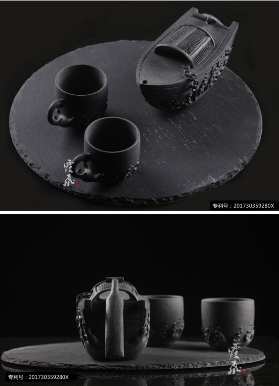 两个茶杯安放于圆盘上的对话,无声胜有声,“福”与“壶”谐音,寓意家的温馨与福气。