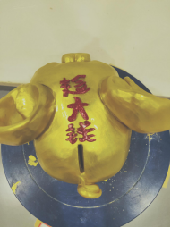 3.造型:闽南话“趁大钱”谐音“挣大钱”,寓意财源滚滚,富得像猪一样流油。猪浑身是宝,本身就是一个硕大的元宝。猪象征圆满,因为它的外表胖胖的,历来视为财富、福气的象征。