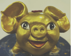 1.创作思想:用来存放钱币的罐子,材质一般为陶瓷或塑料,上端有隙孔以塞入钱币,下方有更大一点的开口以便把钱取出。当然,也有很大一部分陶罐是没有开口的,只能在需要用钱或钱币存满时将其砸碎,将钱币取出。一般存钱罐设计为专门用来存放硬币,多数为猪的形状。因为猪食量大,体胖身圆,有招财纳福之意,几乎成为存钱罐的标准样式。人们将胖乎乎的小猪存钱罐买给孩子,培养小孩的理财能力,养成良好的财富观。