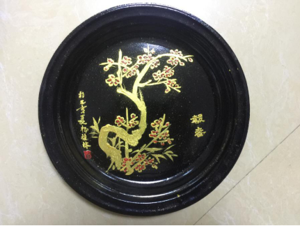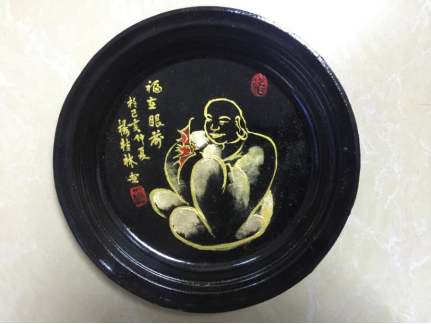 展品介绍:采用传统美术“黑金推·沥金画”的艺术表现形式,以中华传统优秀文化为题材,多元化素材为特色,运用漆艺特点,古今结合及其材质的巧合利用,以民间绘画手法综合运用,在传统中创新,在创新中传承,在传承中发展,融会贯通,具有典雅、古朴、华丽的品味,是旅游纪念收藏和家居、摆挂装饰与非遗文创特色的伴手礼品。