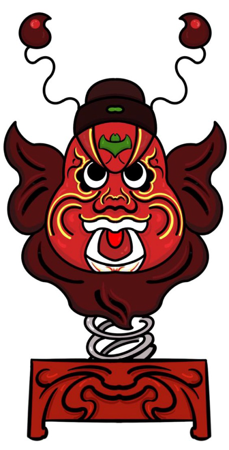 钟馗木偶头形象演变而来的车载香水。钟馗脸上有五只蝙蝠,寓意五福临门,五福就是长寿、富贵、安康、仁德、善终。民间传统习俗认为钟馗具有镇宅、辟邪、保平安的作用。