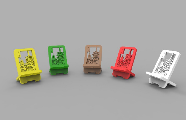以泉州著名景点东西塔造型元素设计,整体材料采用环保安全的瓦楞纸材料,是一款便携式手机支架,可以随时随地拆分组装,简约时尚又实用。