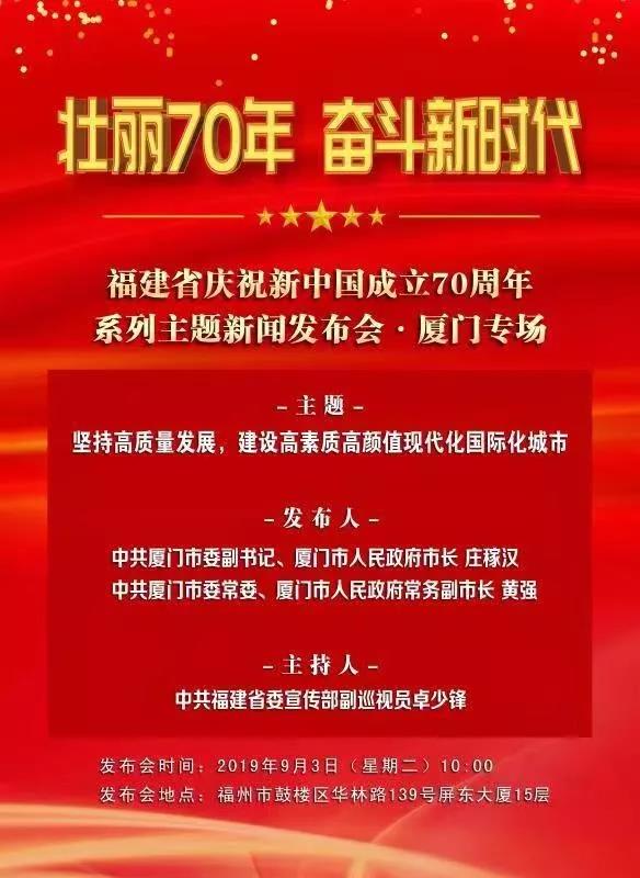 厦门专场发布会将重点介绍70年来厦门奋勇争先、加快发展的新实践和新成就。