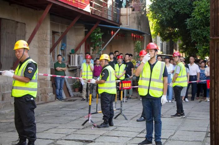 2019年9月12日下午,由泉州文旅集团主办,泉州中侨集团承办,鲤城公安分局、鲤城区交警大队、鲤城区卫生健康局、鲤城区鲤中街道办事处、鲤城区消防大队古城中队、泉州市集英保安服务有限公司、源和1916创意产业园协办的防暴实战演练暨危房应急救援演练在源和1916园区内(彩印公司操场)旁成功举办。