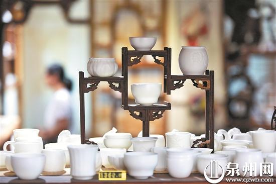 走进多宝堂,橱柜中明代经典德化名瓷《渡海观音》《白釉文昌帝君》等复原作品,绽放出熠熠生辉的独特魅力。“参展商到茶具城,不仅能看精美茶具,还可以欣赏到德化的国瓷、国礼,了解更多德化陶瓷文化。”多宝堂的负责人徐思敏说,以往国宝只能珍藏博物馆,为了让经典再现,走进寻常百姓家,他们与德化陶瓷博物馆协商合作,获得独家授权“让国宝复原”。