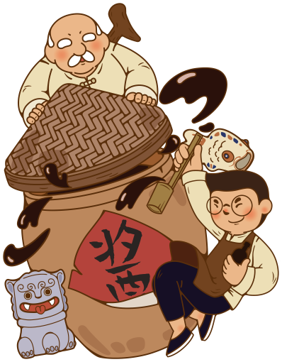 延承唐朝酿酱古法,采用祖传秘方,以传统酱缸日晒夜露的工艺生产小浯塘古法酱油、原晒豆豉等产品。以泉州守缸人祖孙吴宗洲与吴华清为原型进行创作,融合闽南滴水兽、石敢当、酱缸、打酱油等元素进行文创周边产品开发。