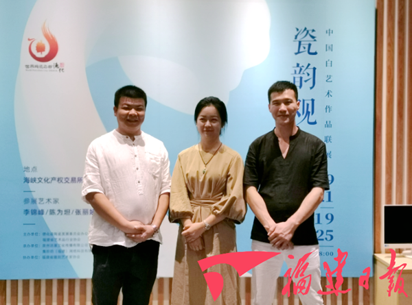 联合展出的德化三位青年瓷艺家分别为李锦峰、陈为坦和张丽娇。展览为期5天,展至9月26日。李锦峰、陈为坦、张丽娇是德化“中国白”艺术的重要传承人之一,是当代德化陶瓷艺术中的重要代表。他们的创作题材广泛,既有传统的宗教意境佳作,又有创新的现代艺术作品,涵盖人物雕像、瓷瓶绘画、茶具绘画等不同种类,追求作品的艺术趣味和形式美感,在当今德化白瓷艺术作品中有鲜明的艺术风格。此次展览展陈方式推陈出新,以传统展览形式为基础,融入艺术空间的“沉浸式场景”进行陈列,将陶瓷作品融入到场景中,做此新型陶瓷艺术作品展览尝试,是为让观赏者更加直观地感受艺术作品魅力。