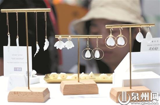 在“中国白·哲选”展位上,洁白的陶瓷制作而成的耳环、灯罩,引起参观者阵阵赞叹:“这耳环居然是用陶瓷做的!”工作人员陈先生告诉记者,“中国白·哲选”是由德化陶瓷产业创新发展研究院和德化县政府共同打造的共享品牌。随着社会发展,年轻人成为消费主体,为此他们生产创作的产品更注重时尚现代的设计美感。今年首次打造“四季耳环”系列,耳坠花瓣薄至0.48毫米,由德化工艺美术大师和台湾设计师一起纯手工制作,全球仅999对。