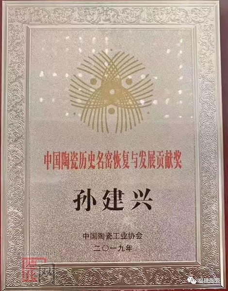 孙建兴荣获“中国陶瓷历史名窑恢复与发展贡献奖”