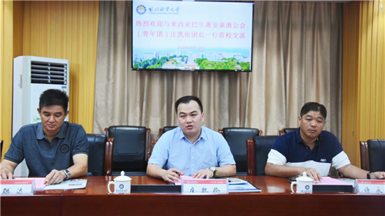 2019年10月19日上午,马来西亚巴生惠安泉港公会(青年团)庄凯伦团长一行莅临我校参访交流。校党委副书记庄一民在慈山六楼会议室接待了客人。国际交流学院郑志明副院长、信息与电子工程学院黄传印博士等人参加会议。会议由郑志明主持。