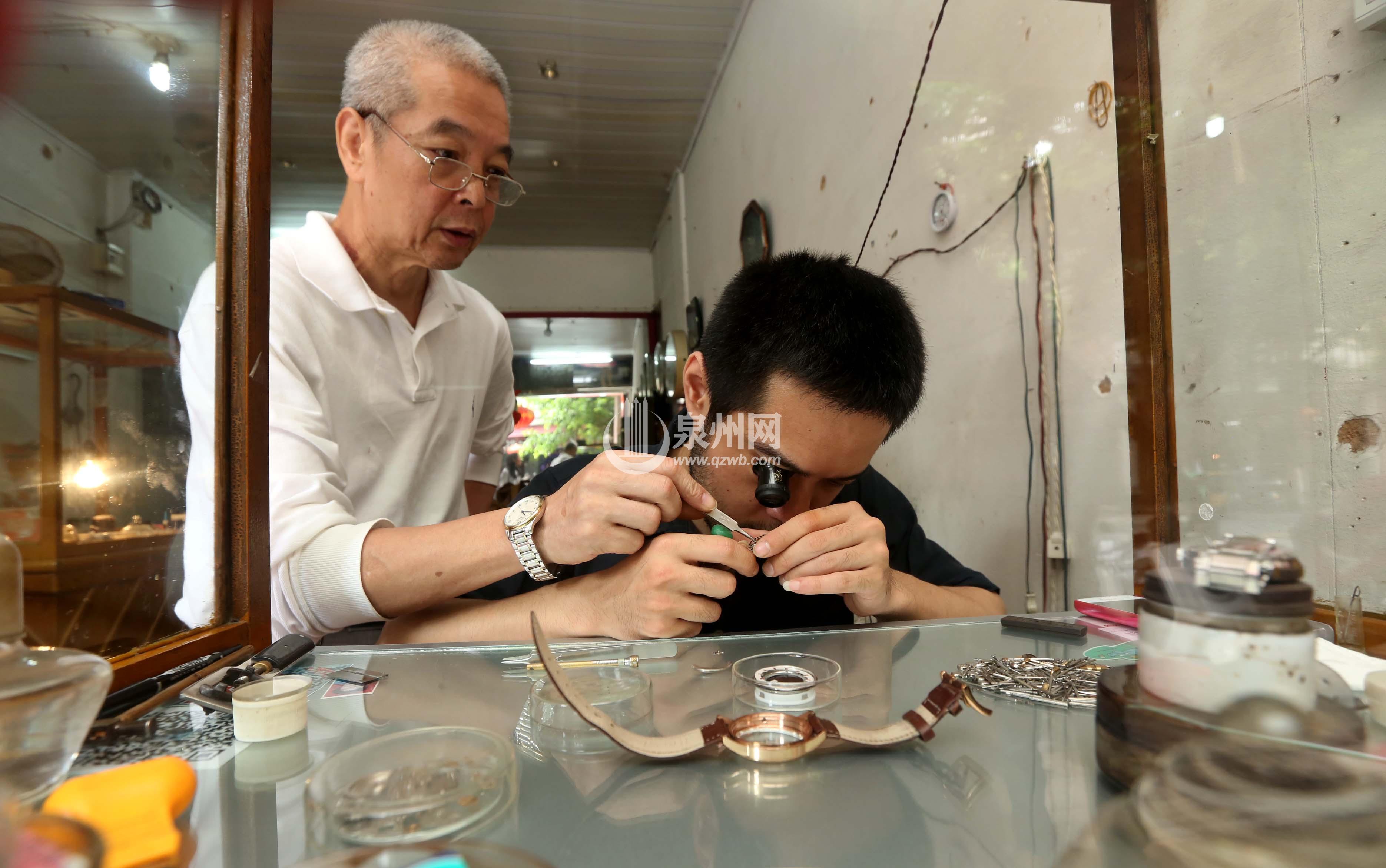 (位于古老中山路上的钟表维修店里,黄铭衔现在是“主力”修表匠)