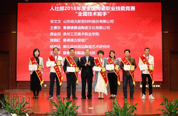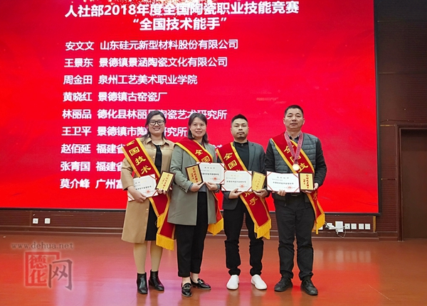 日前,在中国陶瓷工业协会第七届二次理事会上隆重举行了在2017-2018年度职业技能竞赛荣获“全国技术能手”荣誉称号人员的颁奖仪式。福建省4位获奖者均来自德化,他们以过硬的陶瓷技艺以及在竞赛中优秀的表现获得“全国技术能手”荣誉称号。其中,许文矛、林灵月分获2017年度全国陶瓷职业技能竞赛(陶瓷雕塑工)第一名、第二名;林丽品获2018年度全国陶瓷职业技能竞赛(陶瓷装饰工)第二名;周金田获2018年度全国陶瓷职业技能竞赛(陶瓷产品设计)第三名。